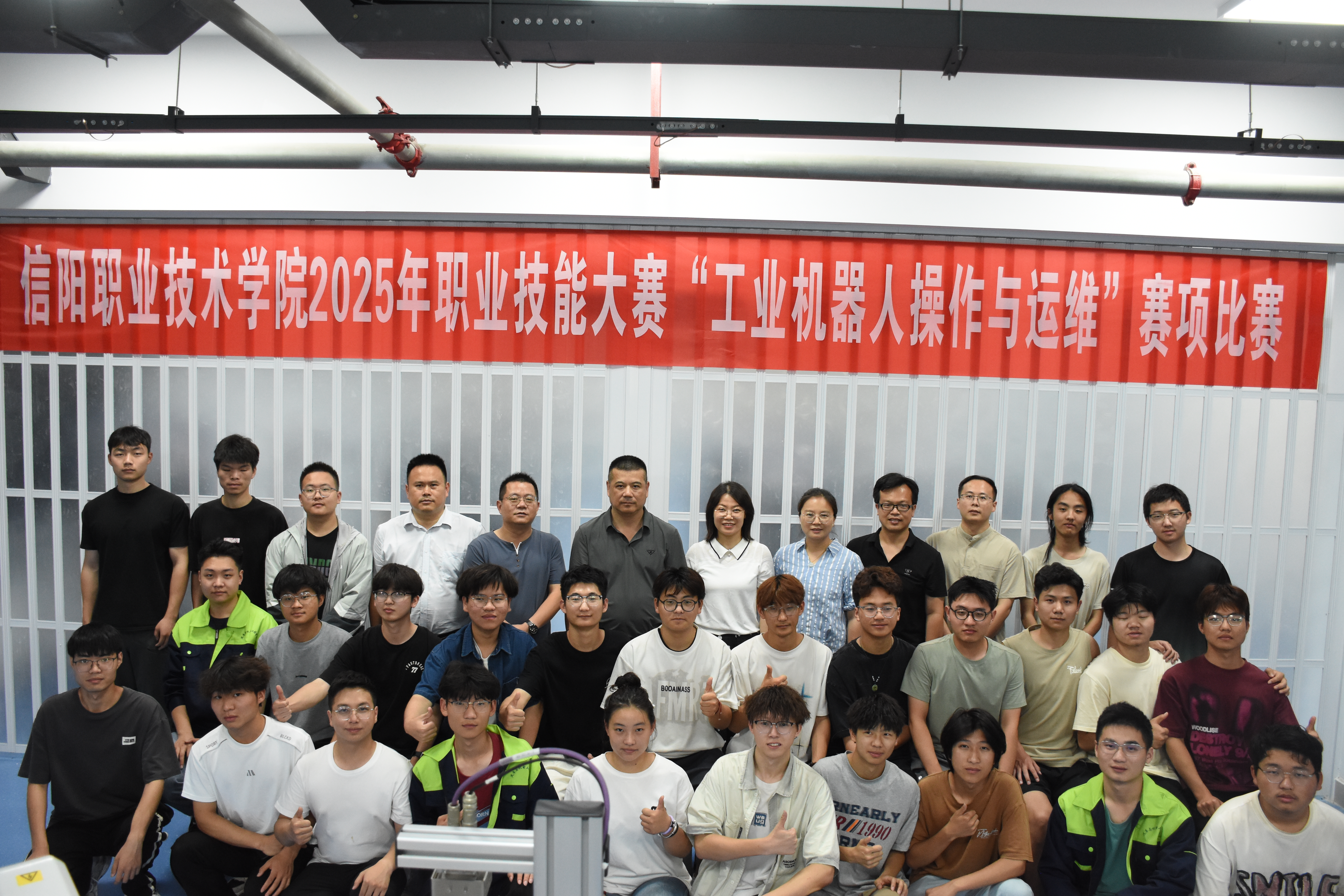 为深化产教融合,推动工业机器人技术领域高技能人才培养,经过初赛全院选拔,6月6日,汽电学院“工业机器人操作与运维”赛项的决赛在学院实训中心圆满举行。本次决赛共有14支队伍、28名学生同场竞技,通过模拟真实工业场景,全面考察学生的专业技能与职业素养。